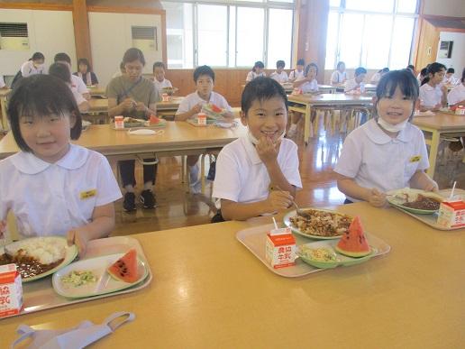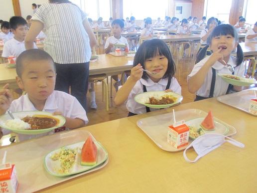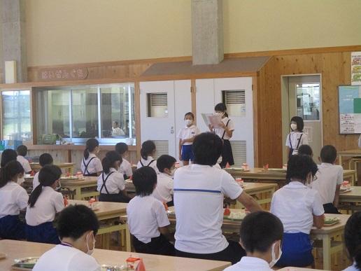 始めに、給食委員会の子が、メニューの紹介。「いただきます。」