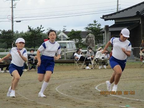 プログラム3番 『風をきって走れ!』5,6年生の100m走です!