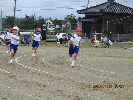 プログラム7番『よーい ドン!』1,2年生の80m走です。