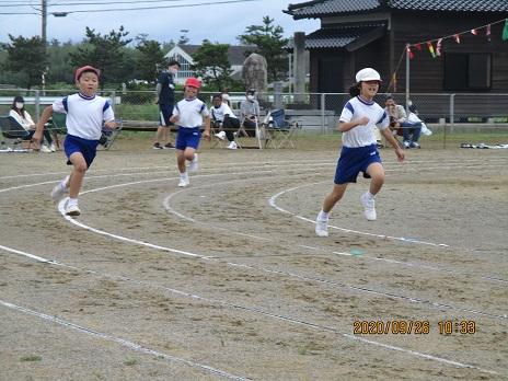 1年、2年、3年は、運動場を半周、走ります。