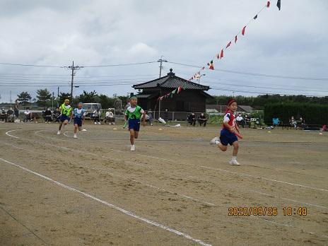 プログラム1番。4年生の引の100m走の様子です。
