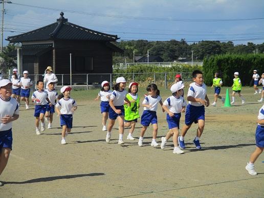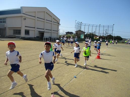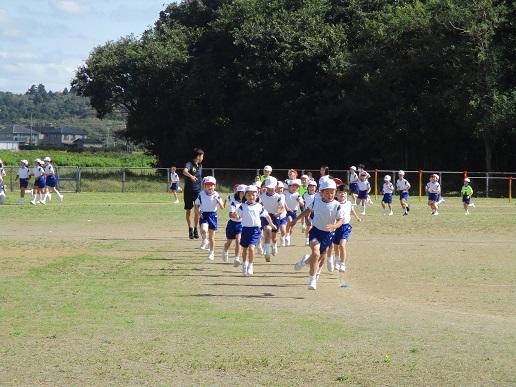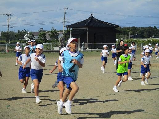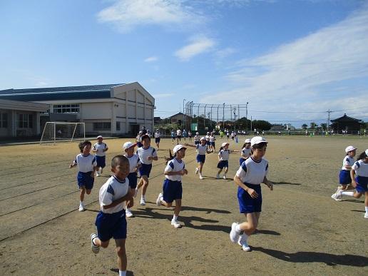 全校みんなで、タッタ、タッタと運動場を走っています。