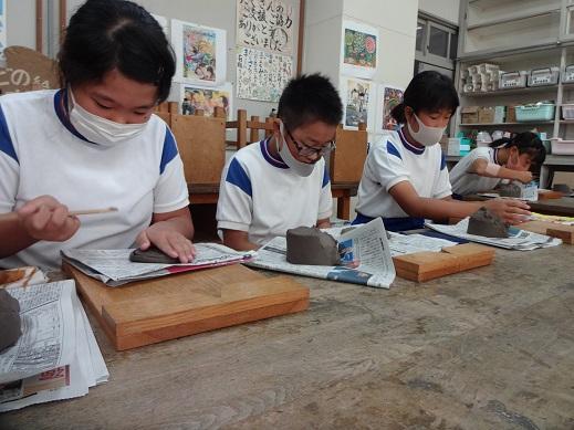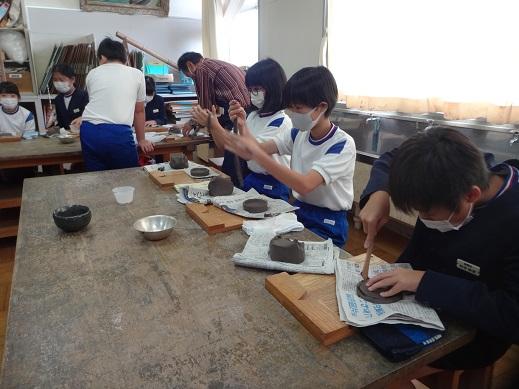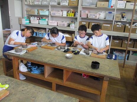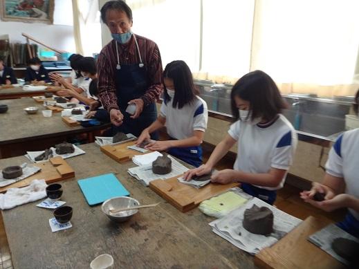 今日は6年生が、卒業記念の抹茶碗を作成しました。