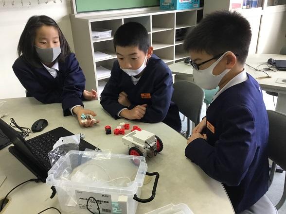 ロボットくんを動かします。グループになって「三人寄れば文殊の知恵」です。