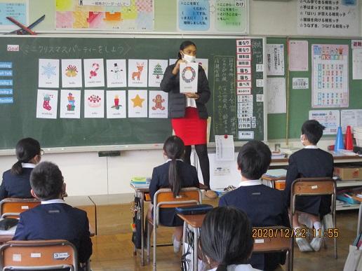 6年生。英語の時間。アモイ先生と、クリスマスの学習中。