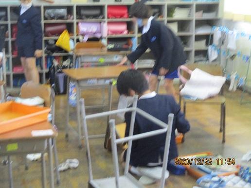 教室のいすや机の足についているゴミも取ります。