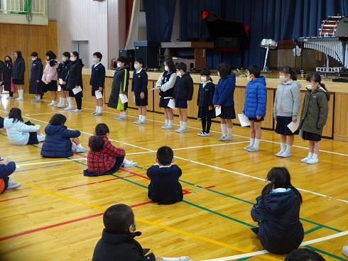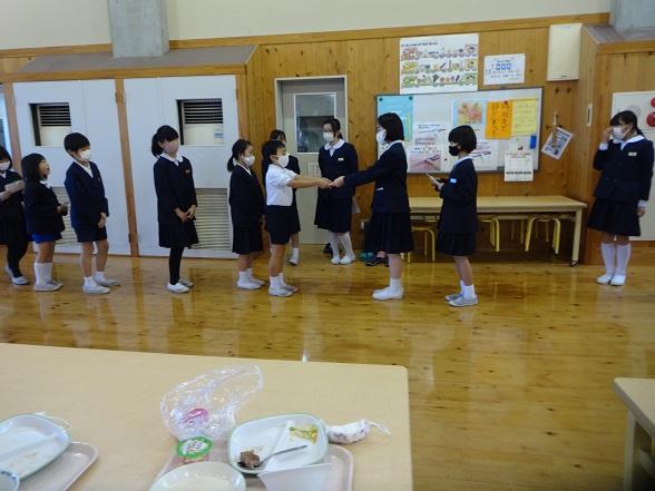 目標冊数を達成した児童に、図書委員会から賞状が渡されました。