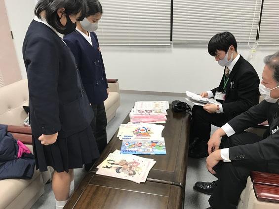 早速、児童会代表の5年生2人と湯上先生で、社会福祉協議会の方にお届けしました。
