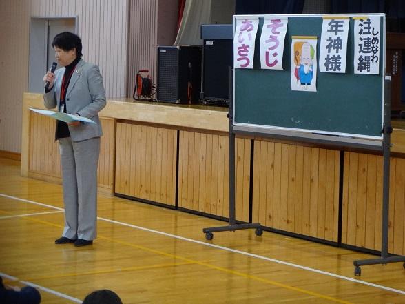 まず、校長先生からのお話。「年神様は、掃除したお家にやってきます。」