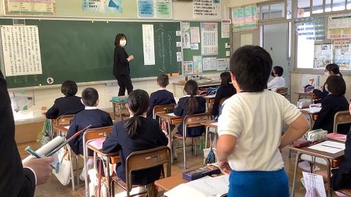 4年生の授業は国語。丹後教諭と20人の子ども達ががんばりました。