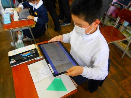 一人一台の端末(タブレット)が配布され、初めて自分のタブレットを開き操作してみました。