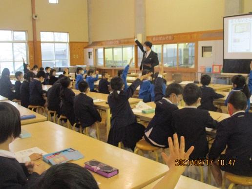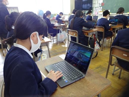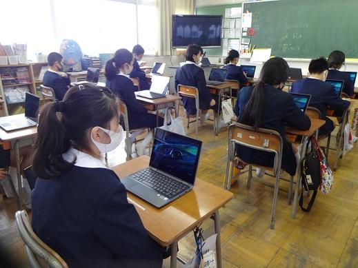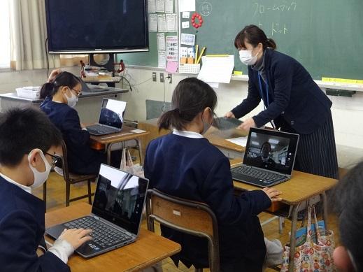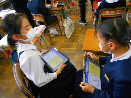 2月17日、5年生がタブレットを使って、クロムブックの授業をしました。