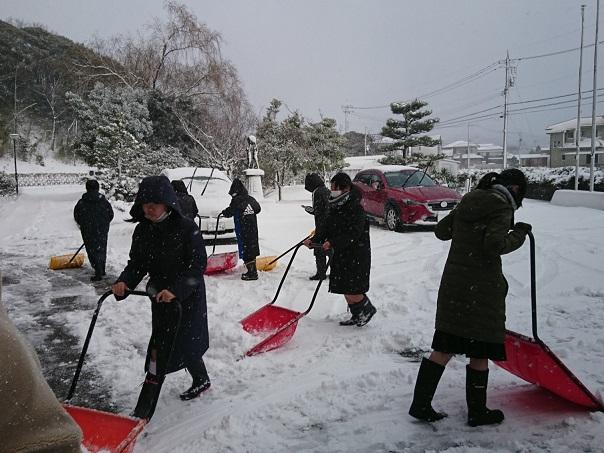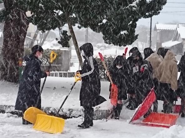 児童玄関前 → 職員玄関前 → 駐車場とせっせと雪かき軍団大活躍です。