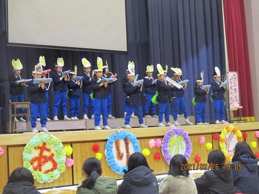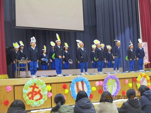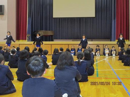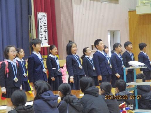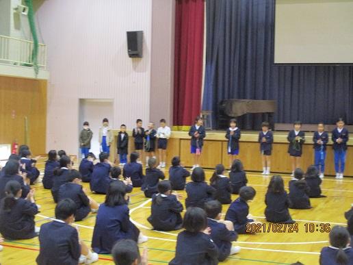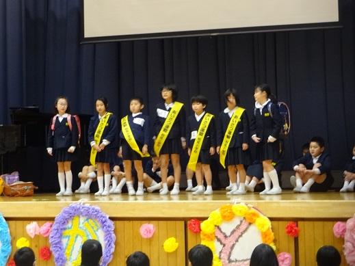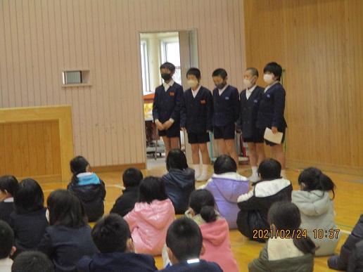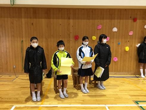 司会進行は、5年生の4人。マイク無しでやるぞ。いい声が出ていました。