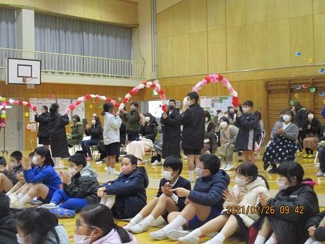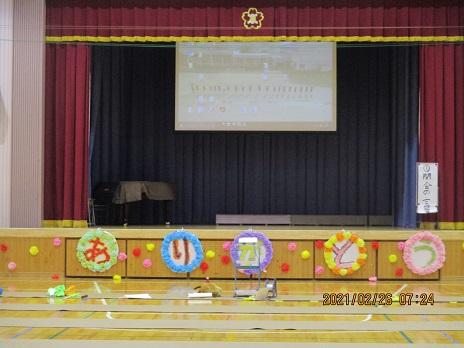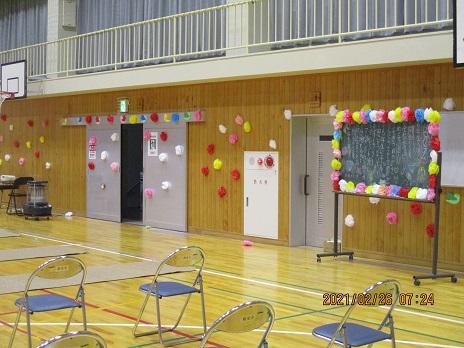 会場の飾りつけは、前日、5年生がしてくれてあります。