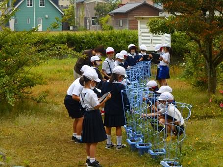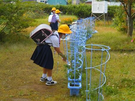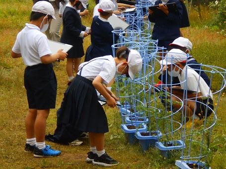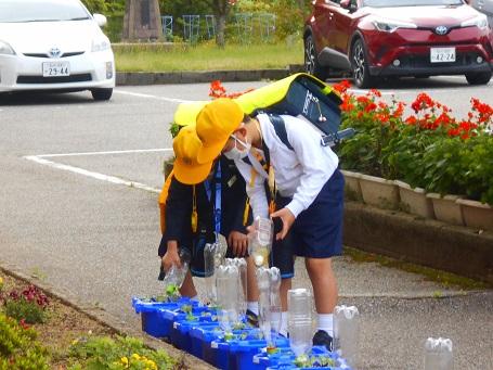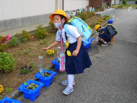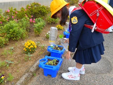 一年生はアサガオを植え、毎朝水やりを頑張っています。
