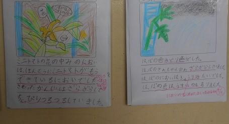 生活科の時間には、観察して気付いたことを「観察記録文」に書いて、保存しています。