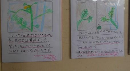 「ミニトマト」の栽培は、国語の学習「かんさつ名人になろう」にも生かされています。