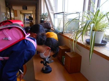 理科室だけでなく、1階廊下にもおいて、みんながいつでも観察できるようにしています。