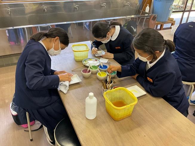 まず、「九谷陶芸村」で絵付け体験をしました。