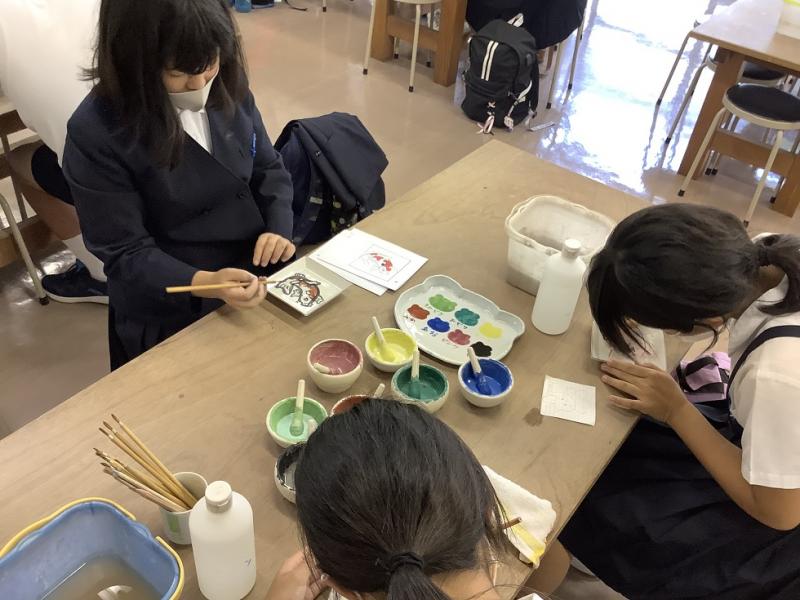 楽しそうに、そして、集中して、絵付けに取り組む姿が見られました。また、じっくり展示物