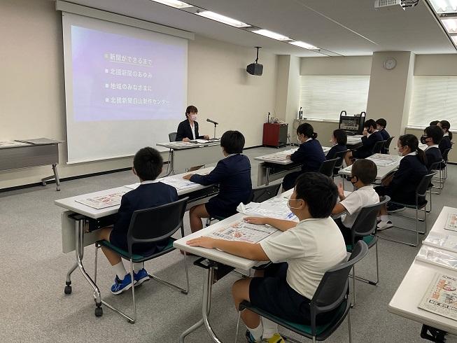 午後は、「北國新聞本社ビル」で、新聞ができるまでのお話を聞きました。貴重な展示も見