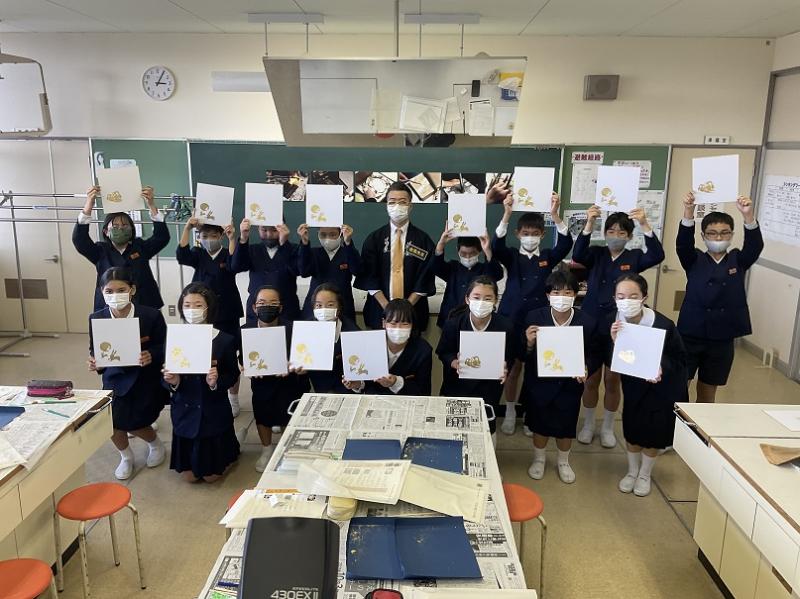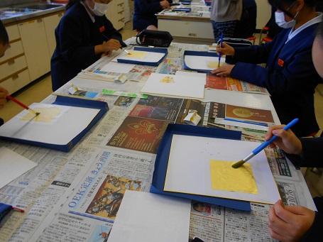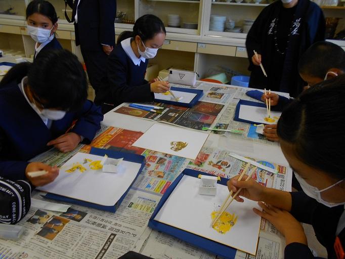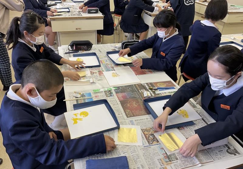 6年生が、伝統工芸に触れることができました。金箔の輝きに、うれしさと驚きの様子が、