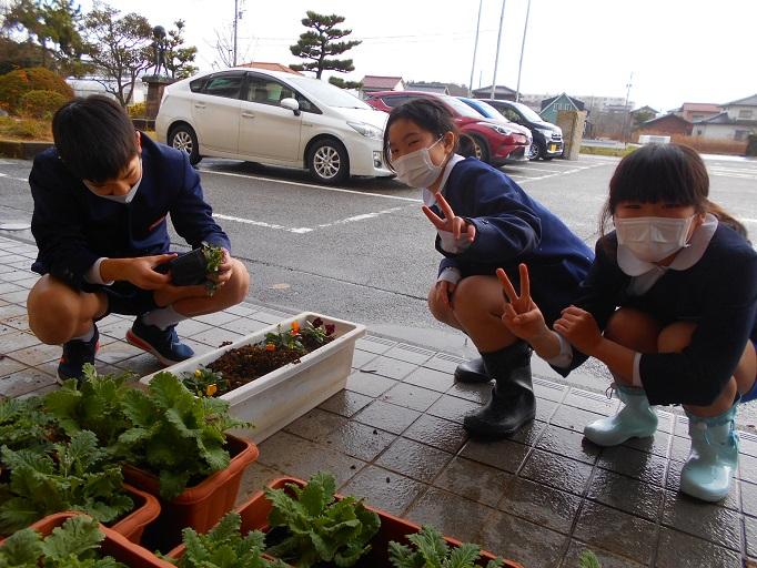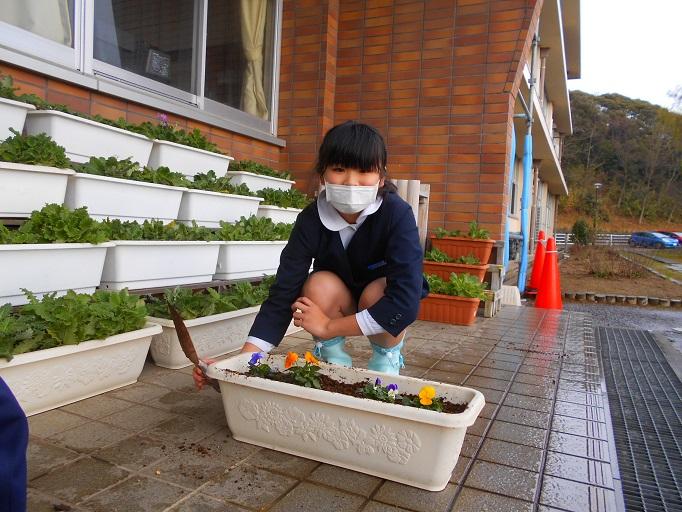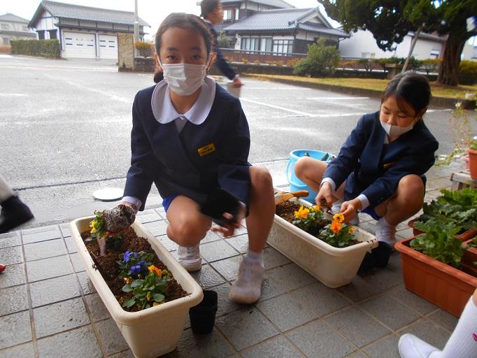 今日は、ビオラの苗植えを行いました。すっかり寒くなりましたが、それでも、黄色や紫など
