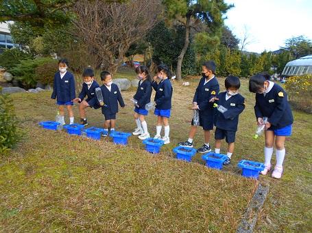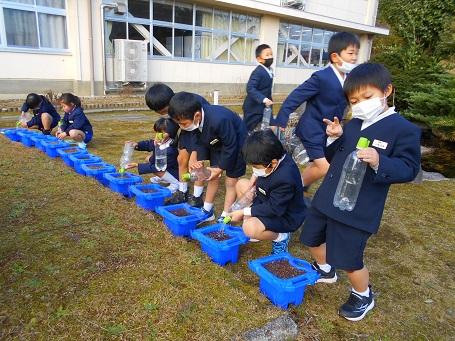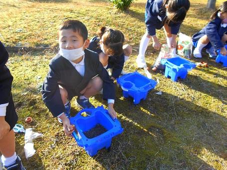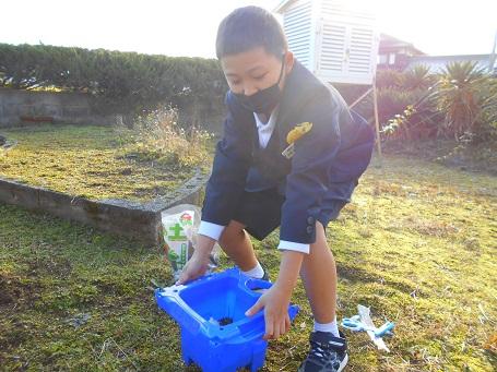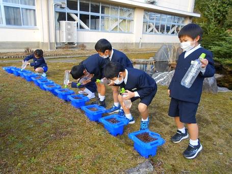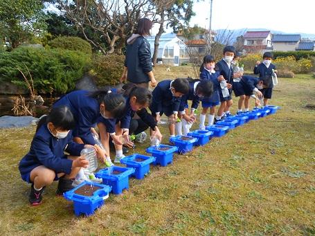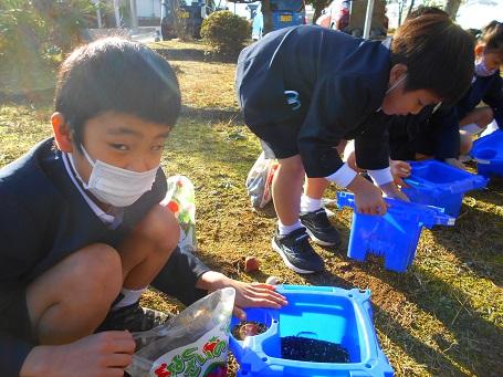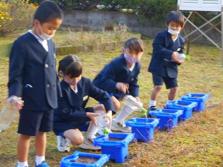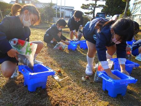 なりました。この時期にしてはめずらしく青空が見られた中、1年生がチューリップの球根を