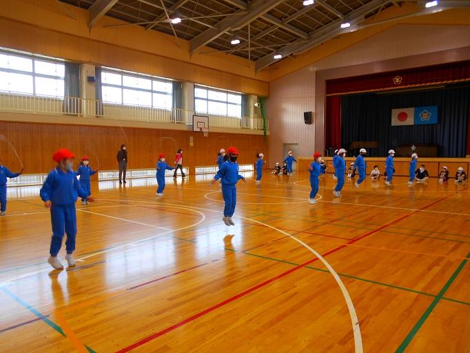 なわとびは、持久力等を育てる上で、とても効果的ですね。ガンバレ!ファイト!