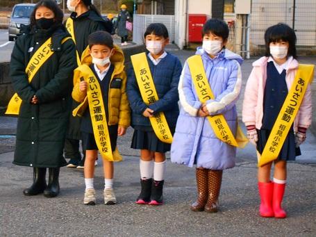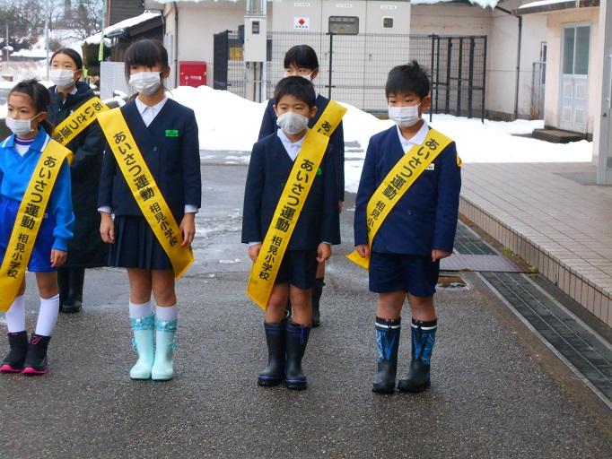 相見小伝統の あいさつ運動 ~一年生も張り切っています~