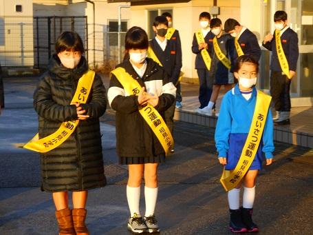 寒い中ではありますが、3学期も「あいさつ運動」を続けています。天気の悪い日は玄関