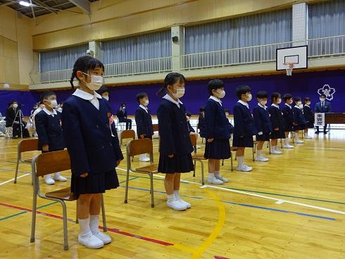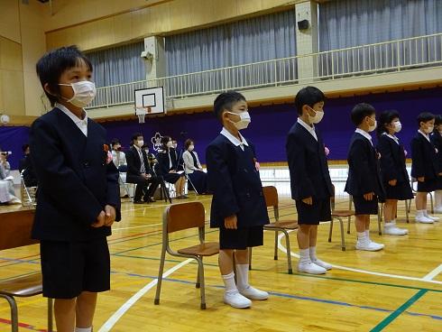 入学式では、担任の八島先生の呼名に、新入生18名全員が元気に「はい」と返事ができま