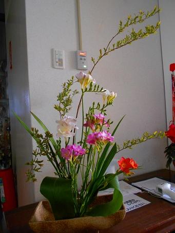 玄関を入ると、地域の方が生けてくださったお花と、地域の方が育て毎週運んでくださって