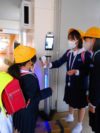 朝の検温も、すっかり上手にできるようになりました。混んでいるときなどは、高学年の人
