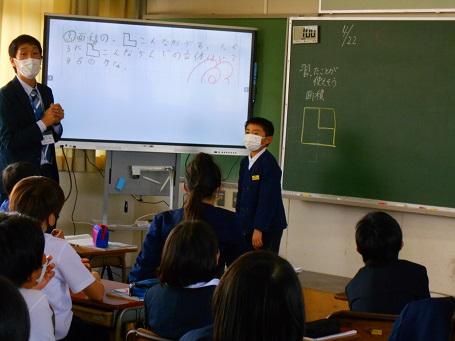 6年算数では、「線対称な図形」であるかどうかを、算数用語を使いながら友達に説明し、