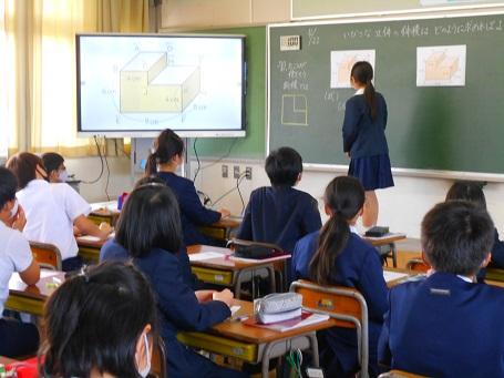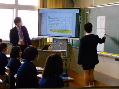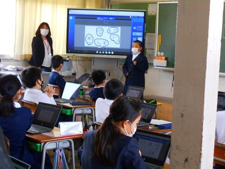 その後、身の回りの線対称な図形を見付け、クロームブックで写真に撮り、全体で共有するこ