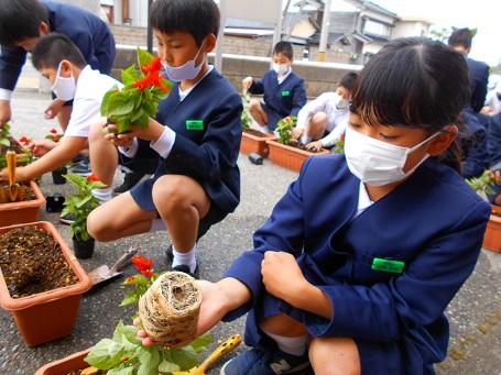 サルビアの苗を植えました ~3・4年生~