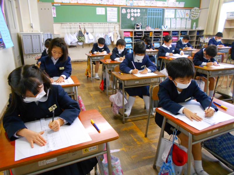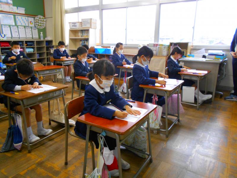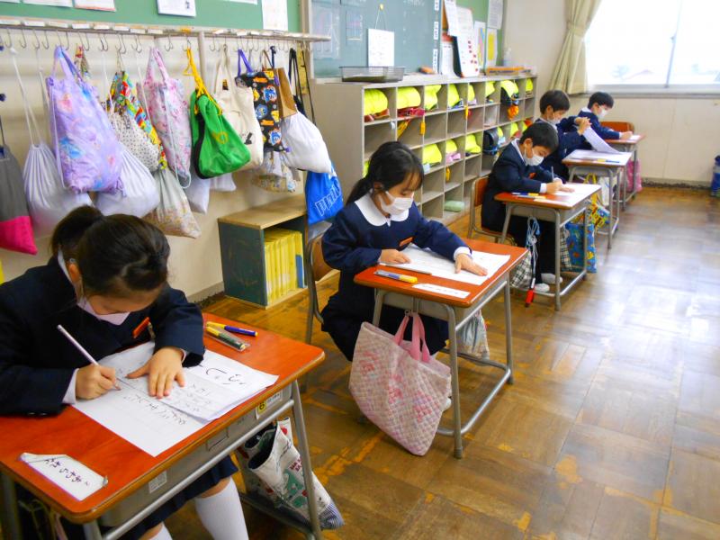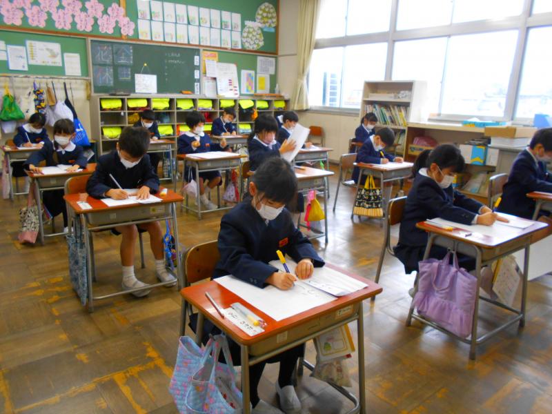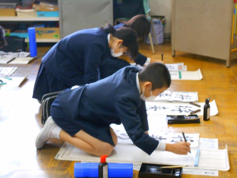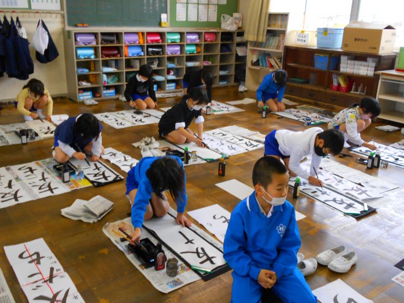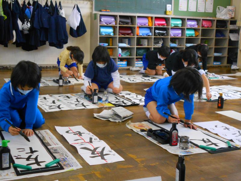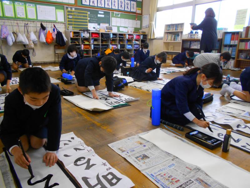 競書会では、1・2先生は硬筆で、3~6年生は毛筆で行いました。どの教室も静かに集中して取り組む姿が見られました。作品には、冬休みの宿題の書初め練習の頑張りが感じられました。有意義な時間となりました。