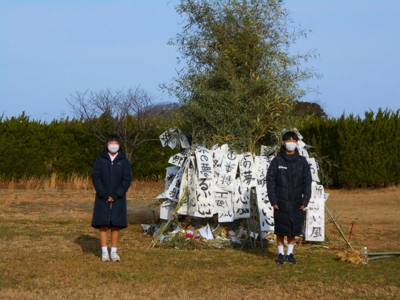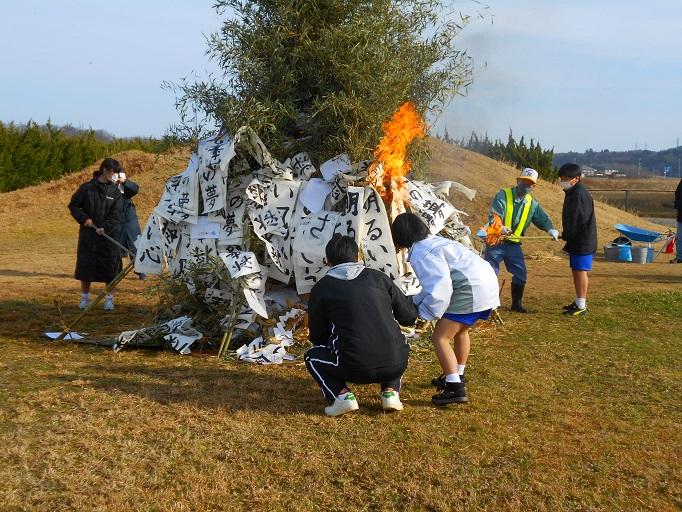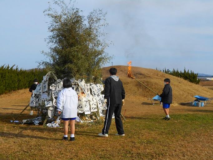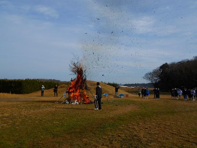 天候にも恵まれ、青空の下、本校伝統の左義長が行われました。