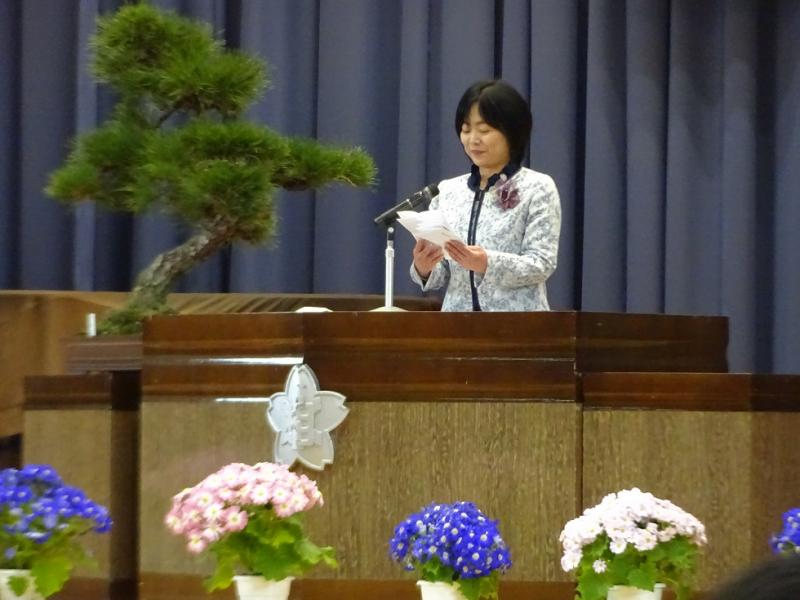 入学式では、担任から1年生一人一人に呼名があり、全員が元気に「はい」と返事ができました。在校生代表とし