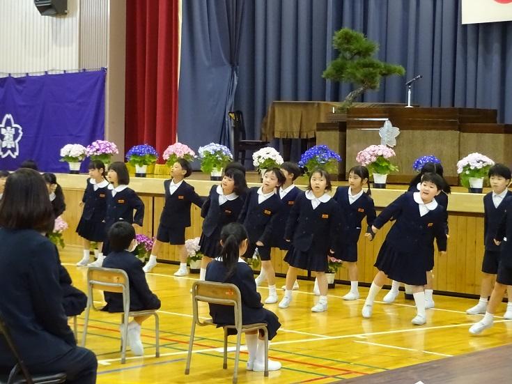 て6年の木下さんが「歓迎の言葉」を述べました。堂々とした素晴らしい姿と言葉でした。また、2年生による元気