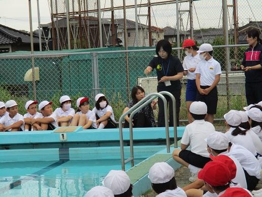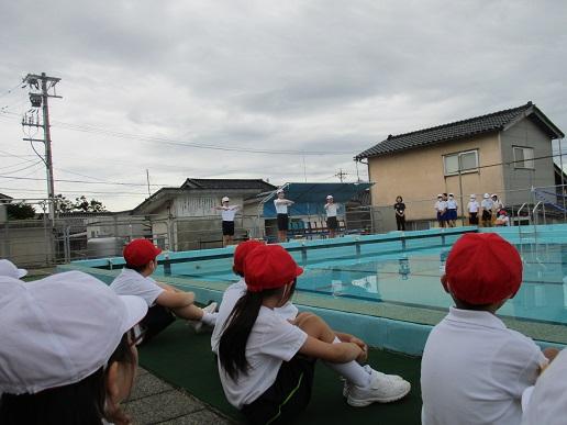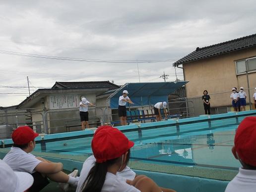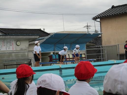 待ちに待った「プール開き」をしました。残念ながら気温・水温が低く、プールに入ることは見送りとなりました。しかし、プールに入るときに気を付けること等を、6年生代表の児童が、動作を交えて、分かりやすく、全校児童に伝えてくれました。安全面に十分に気を付けて、楽しくプール活動に取り組んでいきたいと思います。