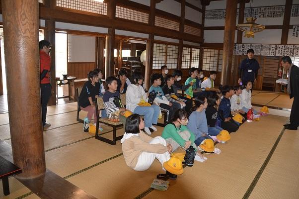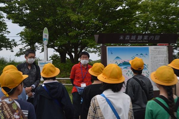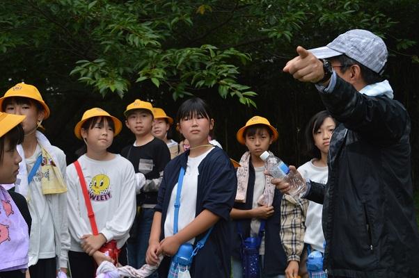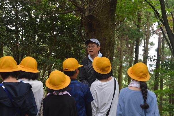 6年生が末森城跡を見学しました。学校ボランティアの長田さんと合戦にゆかりのある真宗大谷派西照寺の末森住