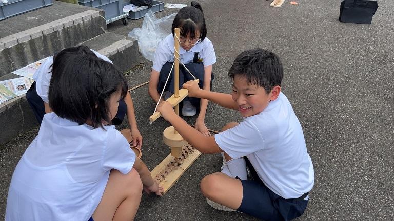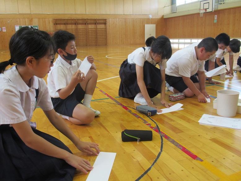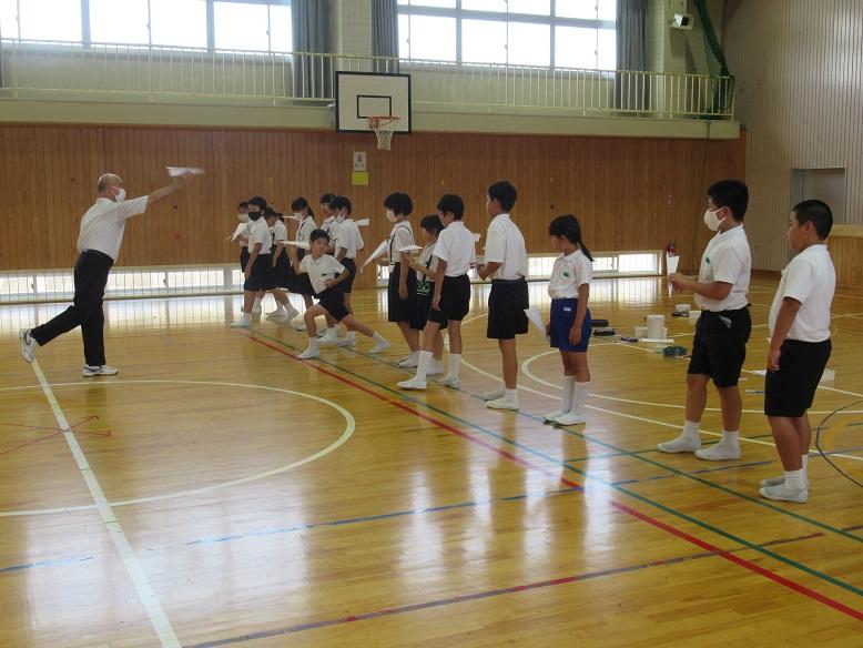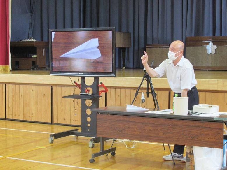 昨年度に続き、講師として木谷先生(元金沢子ども科学財団職員)が来てくださいました。テーマは「科学のひみつを探ろう」でした。普通の紙飛行機から始まり、「イヌワシ型の飛行機」「羽が輪の飛行機」「筒形の飛行機」等、見たこともないような飛行機を、木谷先生に教えていただきながら、いくつも作っていきました。よく飛ぶためには、「揚力(ようりょく)」について理解することが大切だということも教えていただきました。飛行機の先端に重りをつけたり、羽根の形を変えたりと、試行錯誤しながら何回も飛ばしていました。楽しく活動する姿が広がっていきました。「家でもやってみたい。」等の感想が多く聞かれました。