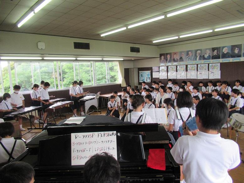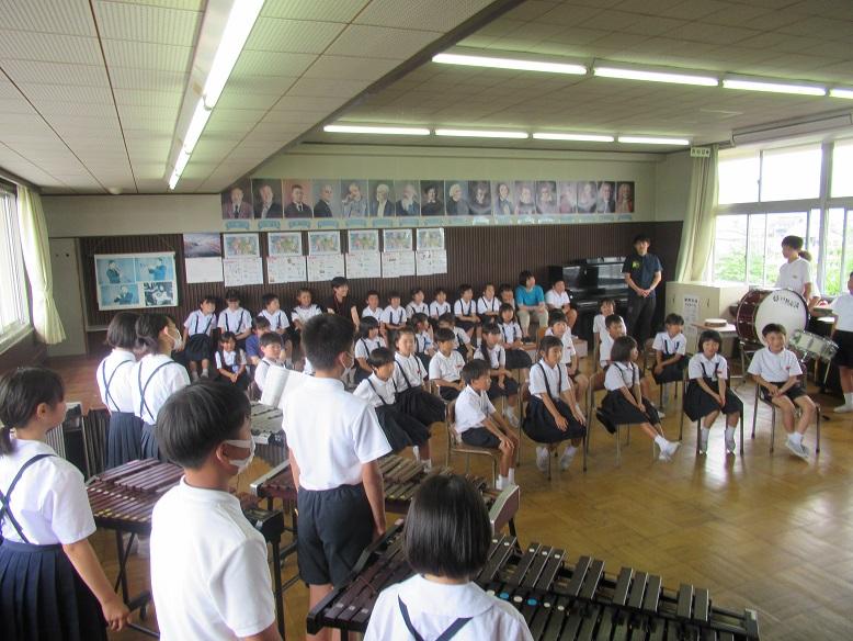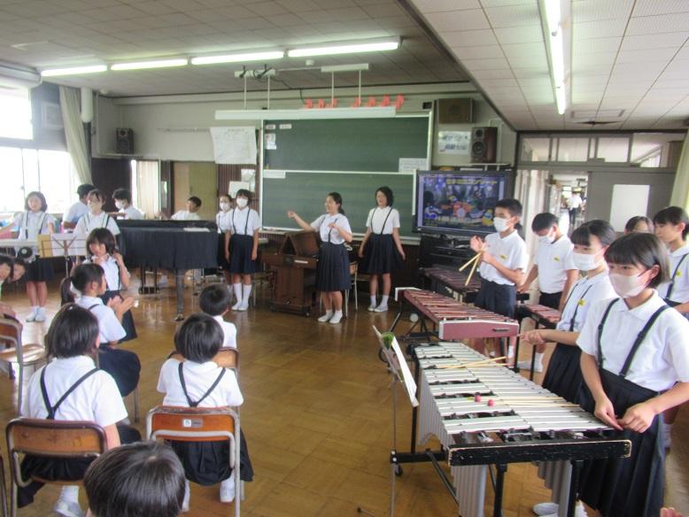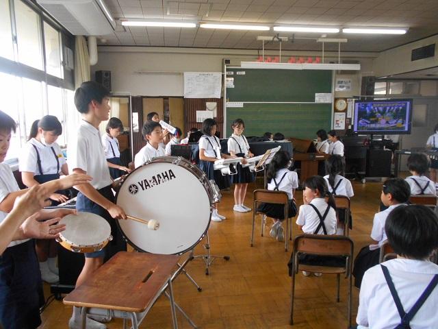 6年生が昼休みに「七夕ミニコンサート」とネーミングした手作りの音楽会をしてくれました。思いもよらないプレゼントに、大喜びの下級生の姿がありました。あっという間に音楽室がいっぱいになり、2回にわたって行われました。音楽の時間に学び、練習した「ラバーズコンチェルト」を披露してくれ、心のこもった音色の重なりと、6年生の真剣なまなざしが心に響きました。