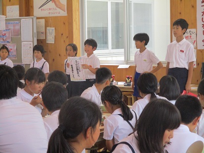 このあと、今日から、4年生に転入してきた子の紹介がありました。