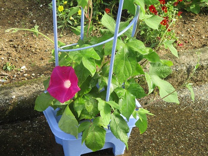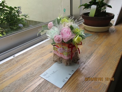 家庭クラブの子ども達が作った花が、きれいに廊下に並んでいます。