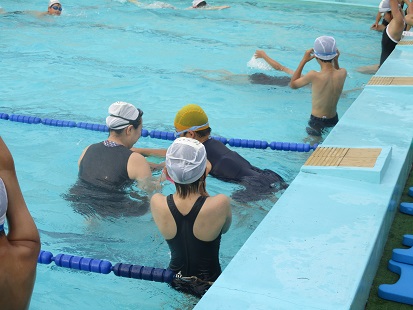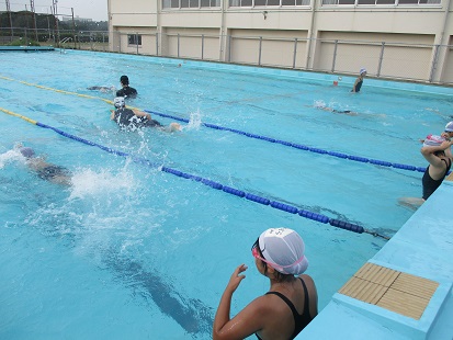 7月24日(水)の町水泳記録会に向けてクロールの練習です。