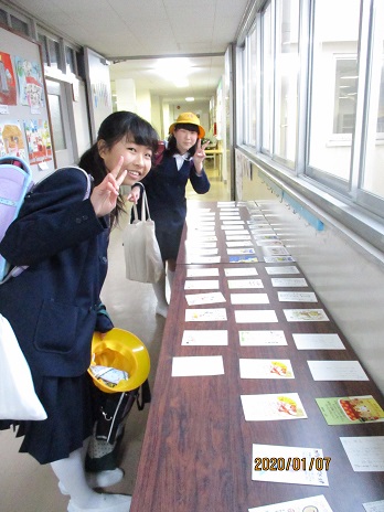 1階廊下には、地域の方から届いた年賀状が並んでいます。